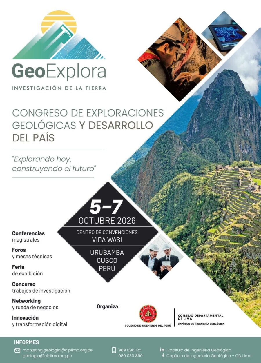El evento, organizado por el Capítulo de Ingeniería Geológica del Consejo Departamental de Lima del Colegio de Ingenieros del Perú, se realizará los días 5, 6 y 7 de octubre de 2026, en el Centro de Convenciones Vida Wasi, ubicado en el Valle del Urubamba (Cusco).