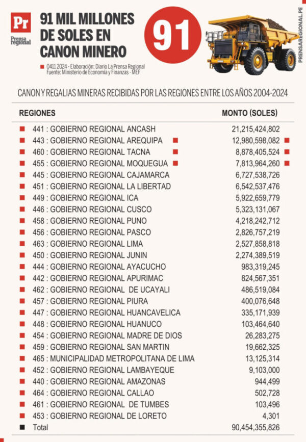 Explicó que estos gravámenes pasan por tres fases: (i) su recaudación, (ii) su transferencia a las regiones; y, (iii) su ejecución. Sostuvo que el Perú mantiene un buen nivel de recaudación, según se aprecia de las publicaciones mensuales del Ministerio de Energía y Minas, en las cuales también se detalla cuánto se transfiere a los gobiernos regionales. Sin embargo, el problema radica, según dijo, en cómo se invierten los recursos transferidos y lo que es más grave aún, que en muchos casos simplemente no se invierten.